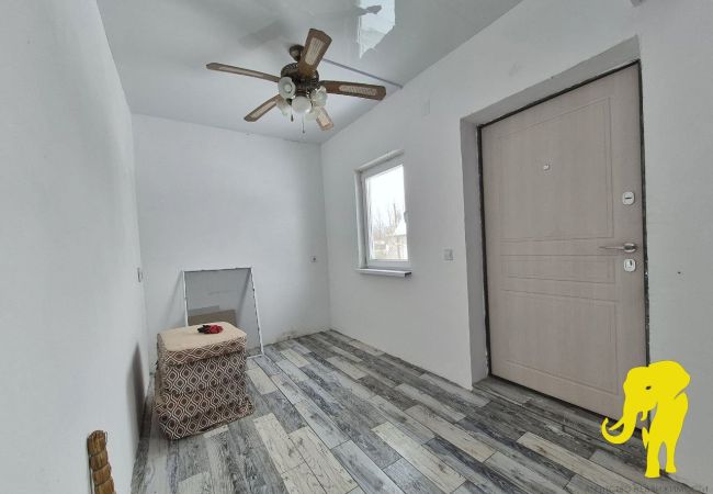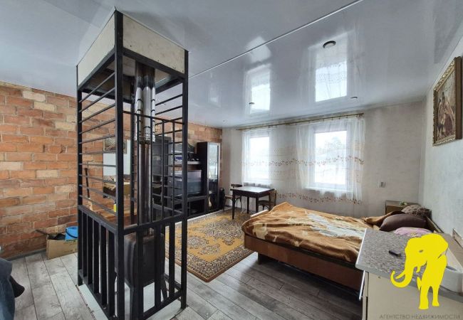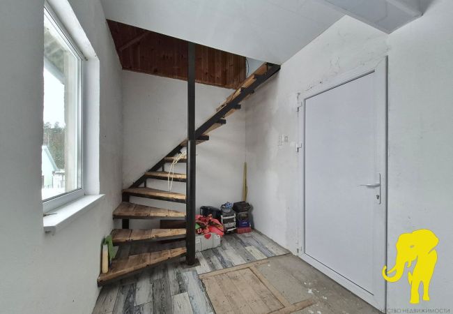 Продается двухэтажный дом. Две спальни и кухня-прихожая. В доме установлены окна ПВХ, входная дверь металлическая. Полы - сухопрессованная стяжка, в двух комнатах ламинат, в прихожей керамогранит. Стены-оштукатурены, в одной комнате-декоративная штукатурка, потолок-панели ПВХ с точечными светильниками; во второй комнате потолок-гипсокартон, окно-витражное с затемненным стеклом с выходом на балкон. Коммуникации: отопление-отопительная печь, водоснабжение-скважина и гидрофор, электричество-централизованное. Есть подвальное помещение внутри дома и цокольный этаж.