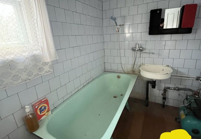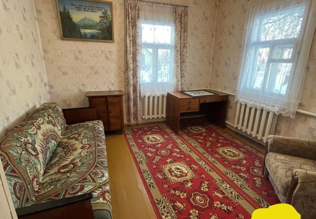 Одноэтажный дом 1966 года постройки, пристройка возведена в 1985 году. Стены из бруса. Крыша - шифер. Окна деревянные. На стенах в жилых комнатах поклеены обои. Пол крепкая деревянная доска. В доме есть погреб. Отопление - газовый котел, вода подается насосом из колодца, канализация местная. Сохранены печи. Зимой дом отапливается
