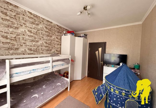 Окна ПВХ. Потолок снежка. На полу ламинат + линолеум. Стены оклеены обоями.
