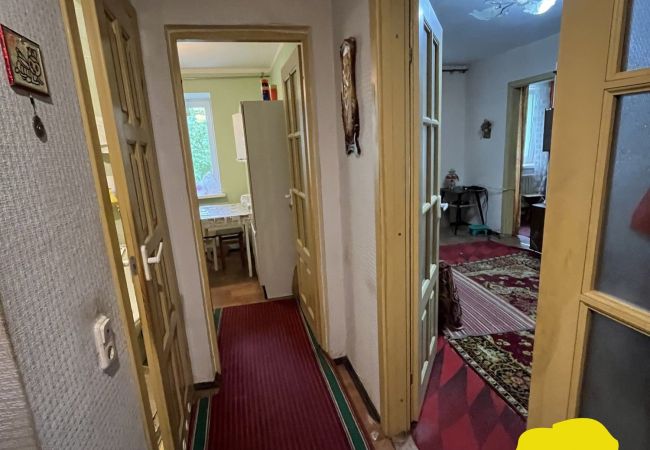 Компактная двухкомнатная квартира с лоджией и сараем во дворе дома. Окна ПВХ. Входные и межкомнатные двери из дерева. На полу залита сухопрессованная стяжка, постелен линолеум. Стены оклеены обоями. В санузле пол и стены выложены керамической плиткой. Установлены счетчики потребления воды и газа.