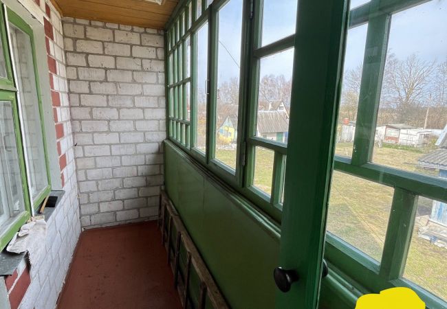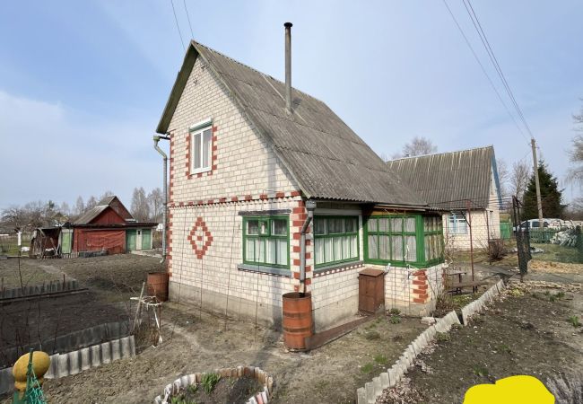 Кирпичный двухэтажный домик с 2 комнатами на первом этаже и 1 комнатой с лоджией и чердачным помещением - на втором. Аккуратное состояние. Окна деревянные, кроме одного окна на 2 этаже. Стены оклеены обоями. На полу линолеум и ДВП. Электричество в доме, вода из колодца, туалет на улице. Отопление печью, которая находится в исправном состоянии. Печь также оборудована духовкой для выпекания. В доме также есть газовая плитка (газ привозной в баллонах). Из обязательных платежей только членские взносы и оплата потребленной электроэнергии. На дом есть техпаспорт, один собственник.