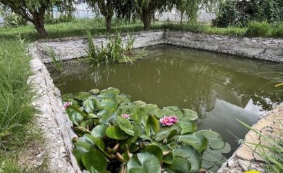 Участок - 0,1359 га. Ровный, правильной прямоугольной формы. Огорожен со всех сторон. На участке высажены декоративные растения, выкопан пруд.