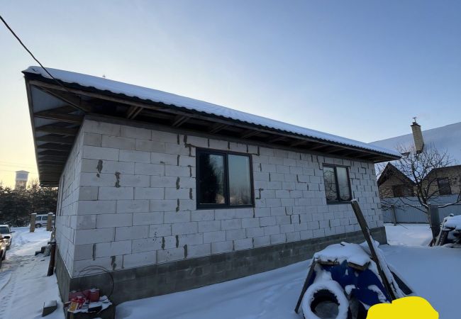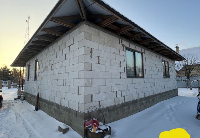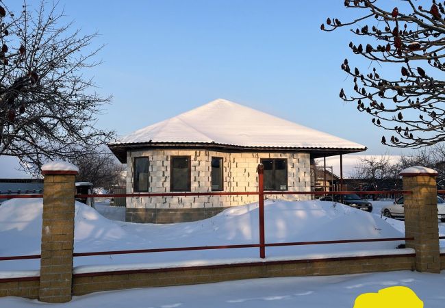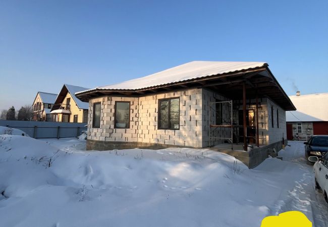 Блочный одноэтажный дом 2022 года постройки. Крыша из металлочерепицы. Стены – блок. Внутри залита черновая стяжка, выполнена разводка канализационных труб. Окна ПВХ с ламинацией. Электричество 380 в летней кухне и 220 в доме, центральная канализация проходит рядом (оплачен проект), центральная вода в доме, центральный газ в доме. Выполнена разводка электропроводки.