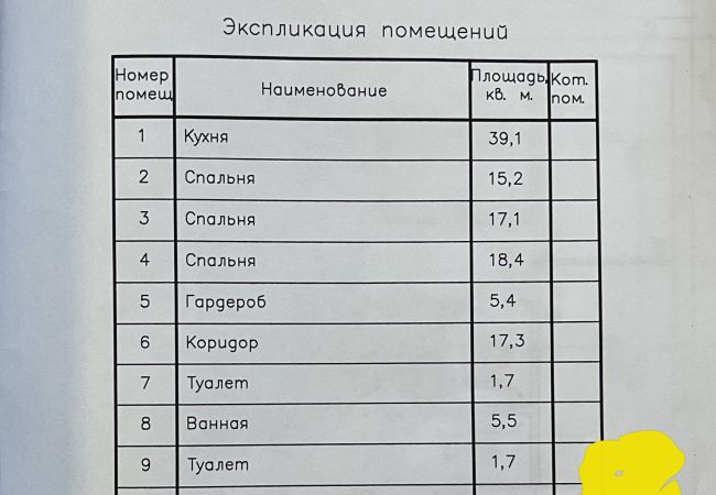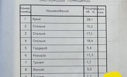 3 спальни, просторная кухня-гостиная, санузел, гардеробная, ванная комната и 2 туалета.