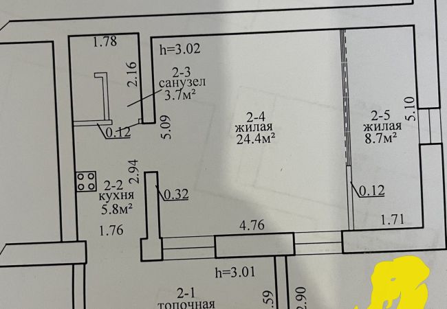 Квартира в блокированном жилом доме в центре города. В 2023 году проведена полная реконструкция. Современный качественный ремонт! На полу залита сухопрессованная стяжка и оборудован теплый пол, отделан керамогранитом. Потолки натяжные. Окна и входная дверь ПВХ. Стены в жилых комнатах оклеены обоями, в кухне жидкие обои и краска. Стены и пол в санузле выложены керамической плиткой. Отопление газовое (установлен двухконтурный газовый котел) как радиаторами, так и теплым полом. Канализация местная. Вода центральная. Высокие потолки - 3 метра.