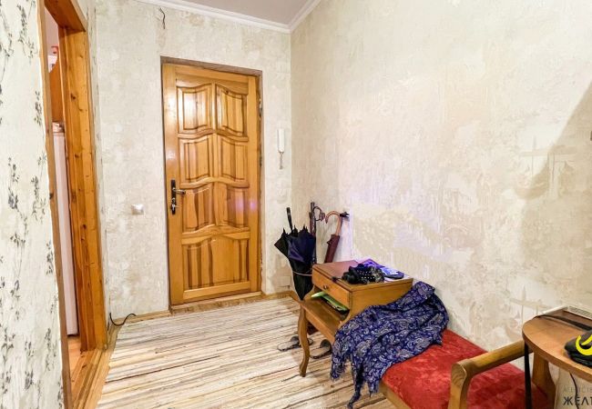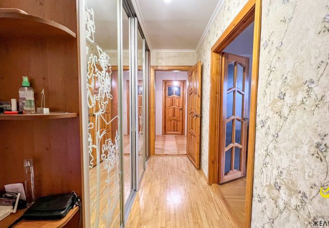 Продается трёхкомнатная квартира на Востоке в Бресте. Общая площадь квартиры – 84,9, жилая – 48,4, кухня – 13,2 метров квадратных. Санузел совмещённый. Две застеклённых лоджии (одна – из кухни, вторая – из комнаты). Окна – ПВХ, балконные группы деревянные. Полы – паркет, керамическая плитка. Потолки – оштукатурены и окрашены. Стены оклеены обоями, в санузле и на кухне – керамическая плитка.