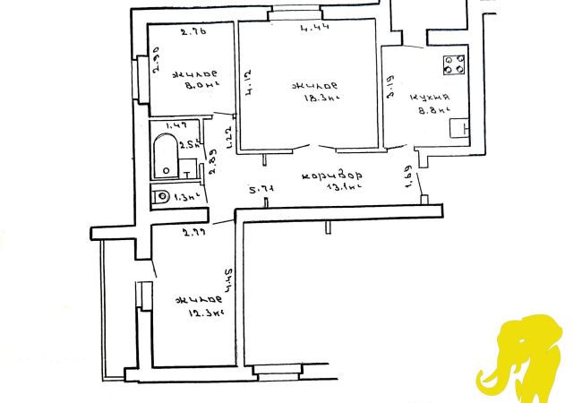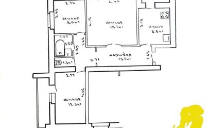 Продается трёхкомнатная квартира на Речице в Бресте. Общая площадь квартиры – 68,4, жилая – 38,6, кухня – 8,8 метров квадратных. Санузел раздельный. Две застеклённых лоджии (одна – из кухни, вторая – из комнаты). Окна – ПВХ, балконные группы деревянные. Полы – деревянная доска. Потолки – частично оклеены потолочной плиткой и обоями, частично окрашены. Стены оклеены обоями, в санузле и на кухне – керамическая плитка.