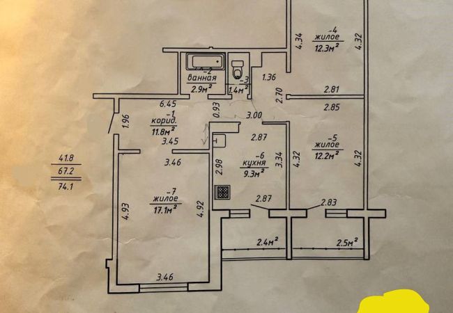 площадь: 74,1/41,8/9,3 кв.м.