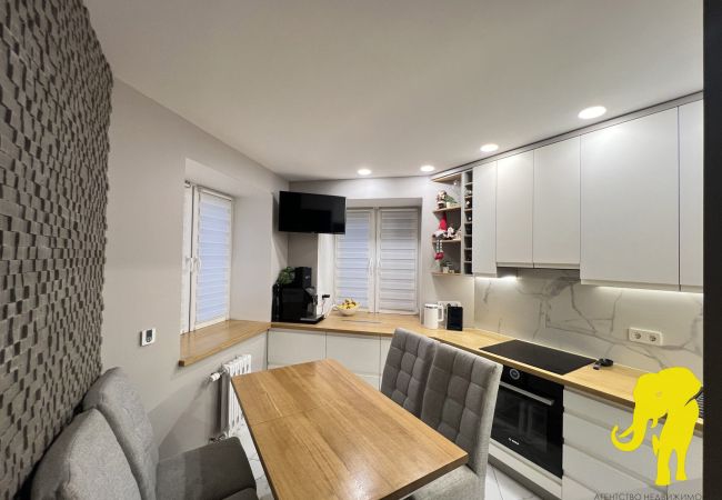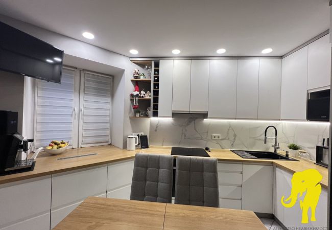 • Кухня вашей мечты: Кухонный стол и столешницы из натурального дерева, фасады окрашены. В подарок 4 телевизора (гостиная 65 дюймов, спальня 55 дюймов, детская 49 дюймов, кухня 32 дюйма) для вашего удобства.