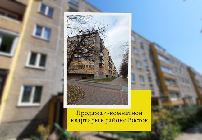 Четырехкомнатная квартира в районе Восток. Квартира полностью готова к ремонту. Полы - хороший дубовый паркет. Есть балкон и лоджия. Окна деревянные. Новая входная металлическая дверь. Есть кладовая, которую можно переоборудовать под гардероб. В подвале имеется место для хранения.